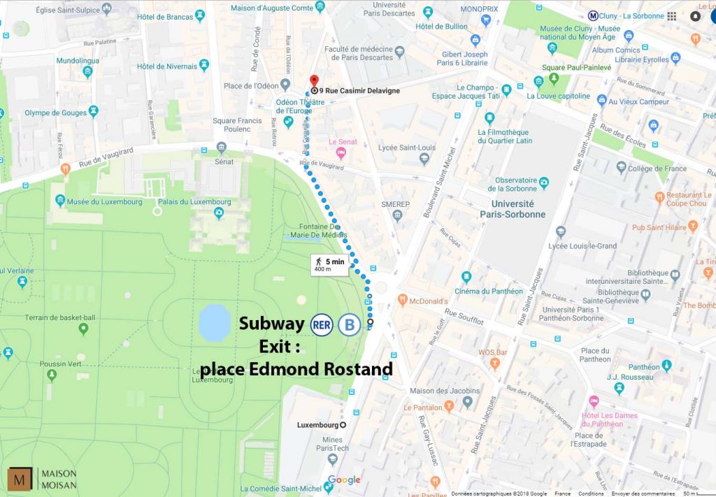 Once you get to the « Luxembourg » station it is only a 5 minutes walk to get to the apartment. (click here to see the route)